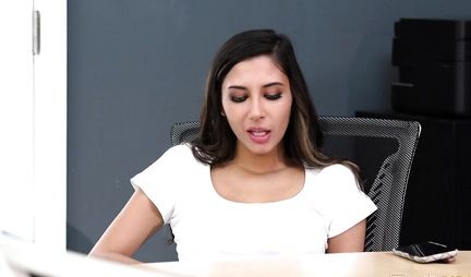 A dark-skinned chick sticks to the boss in the office and makes her cunnilingus