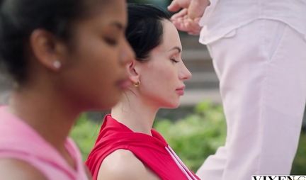 Charming tanned girls right in the villa arranged a group sex with a muscular rich man, whose fat penis will only be to their joy. Young lovers are ready to rub the male hose with warm pussies for a long time and with high quality and leave as much lubricant as possible on it until it ends with semen in them.