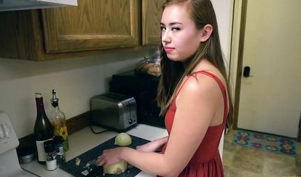 If a beloved girl cooks in the kitchen and cuts onions, then judging by the fact that she does it without panties, the cutie is ready for other sweet activities. That is why, at the first sign of her beloved man, she goes into the bedroom with him and is ready to do his big horseradish, because she loves this vegetable much more than all others and even carrots and cucumbers, which, if necessary, are so sweet to masturbate.