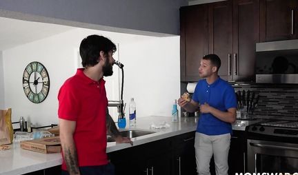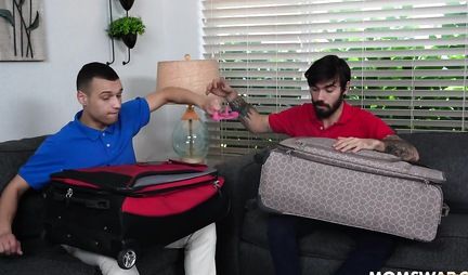 Flight attendants always carry not only personal items, but also their favorite sex toys with them in their suitcases. These mothers are accustomed to giving themselves pleasure every time, as soon as their caps begin to whine from sexual hunger. Stepsons, as soon as they found small vibrators in mothers' suitcases, decided to arrange a pleasant surprise for them. And the surprise was hot group sex, where young guys with their strong and powerful members indulged the wet pussy of mothers in a variety of poses, enjoying their gentle moans.