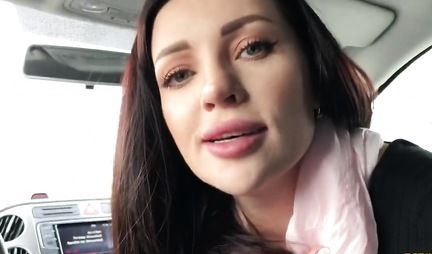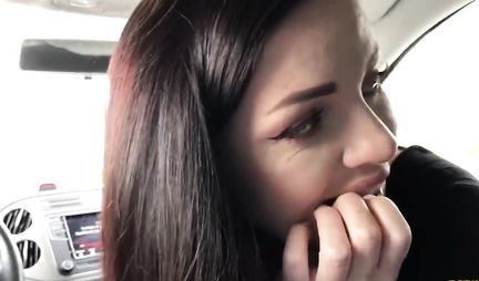In the car, the brunette opened her mouth and gives a blowjob to a friend, taking his sperm