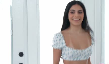 A cheerful brunette with small tits really wants sex