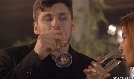 Cheerful chicks after champagne are ready for a hot orgy