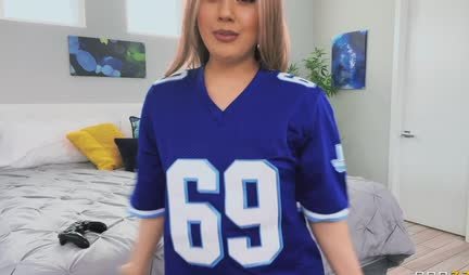 This pretty platinum blonde is not only a member of the student cheerleading team, but also runs her own streaming channel with an erotic bias. And today she invites the producer of the channel to visit, who comes to heartily have sex with a juicy cute girl and at the same time make money without which real art simply cannot exist.