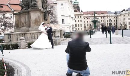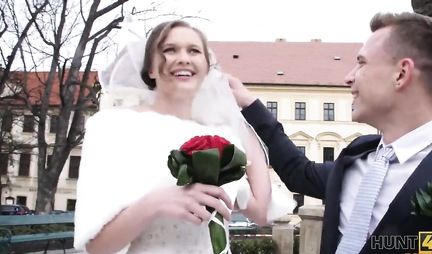 The guy and the girl have a wedding today, everything was fine until a creditor came to them, who really wants to get his money. So the bride has to pay off her husband's debts. The girl in a veil and stockings has already opened her mouth and made such a blowjob, from which the guy's penis became very hard and ready for spanking. The groom looks at how his wife is cheating and moans from the penetration of a penis into a tight and wet hole. The bride showed herself at the highest level, got an orgasm and paid the debt for her husband.