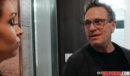 Wife in stockings cheating on her husband with an insatiable man and his member