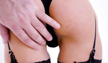 A mature woman in stockings experiences a bright orgasm from her lovers penis