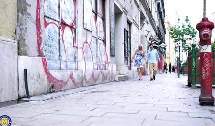 A mature blonde on the bed saddled a young guys penis for a vaginal orgasm